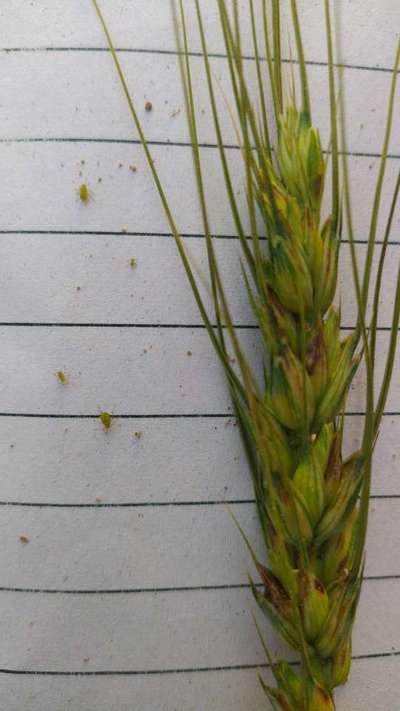 Hi friends. You can see the insect that are near the wheat and you can see the condition of wheat too. What is name of this insect and what is solution of this