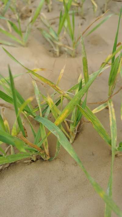 After spray of herbicide , Findus" growth of wheat retarded and plant apix turned in to yellow and some plant have completely dead.. what is possible solution for wheat crop