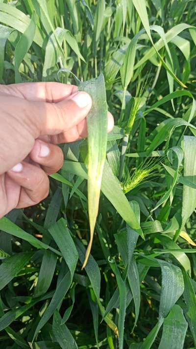 Learn more about PlantixWhitish yellow in wheat crop top of leave