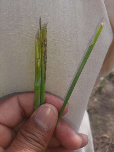 Wheat crop is in milking stage and stem is getting decay and rotting. Due to this plants yellowing.