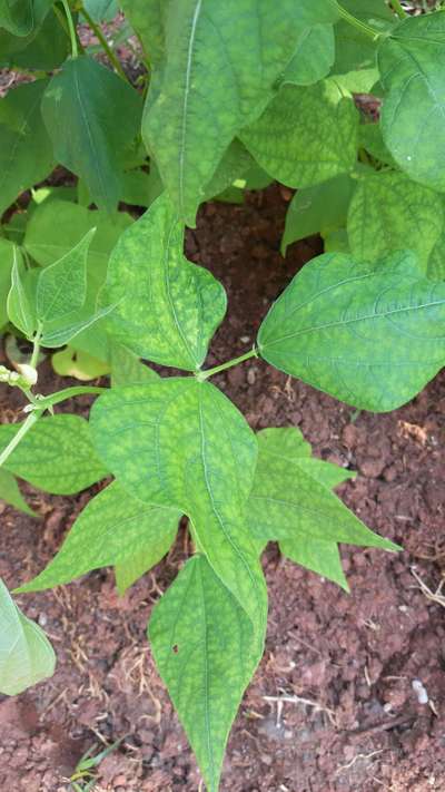 No entiendo que problema tenga mi cultivo de frijol. Las hojas son pequeñas, arrugadas, rallas de color café.