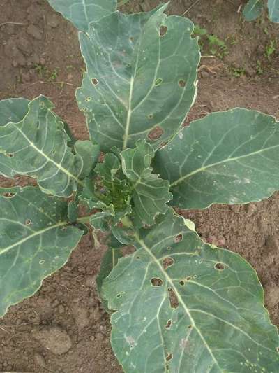 Hola Vinitoapanta, gracias por contactar con la comunidad Plantix. Por la foto que envió parece tener orugas. Vea por favor nuestro enlace en Plantix y compare Oruga del tabaco , Gusano de la cabeza del repollo , Palomilla dorso de diamante con la información completa y el tratamiento recomendado. Si tiene más fotos por favor envíelas así podremos puntualizar mejor el patógeno. Saludos,