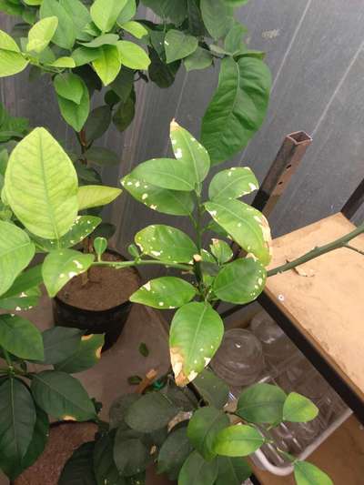 Hi there, This citrus plant might be associated with also Potassium Deficiency showing chlorotic appearance of dried leaf margins and young leaves show leaf chlorosis similar to a symptom of Magnesium Deficiency. Thank you Pablo Dyment for the great insight , but Septoria Leaf Spot is a disease in tomato.