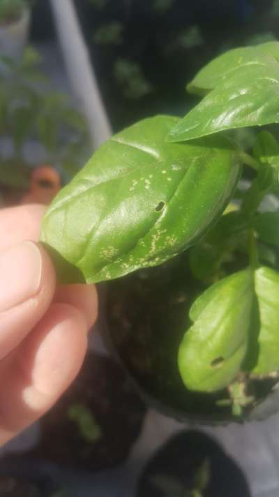 Más información sobre PlantixA esta planta de albahaca le aparecen estas manchas y no veo ningún insecto por debajo de las hojas.