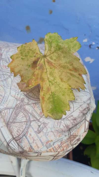 Tengo una parra muy grande y tienes muchos años, le están saliendo estas manchas en algunas hojas y se caen, a ver si me podéis ayudar a curarla, ya está cuajada de racimos pequeños