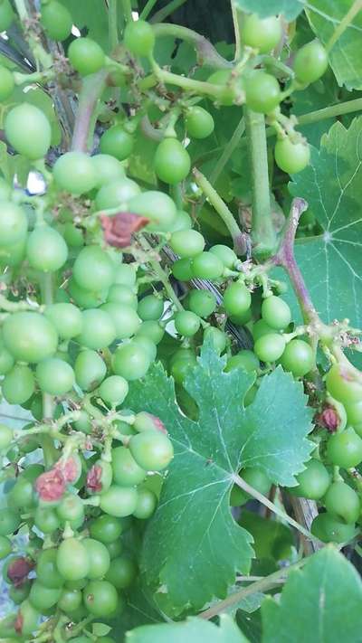 Primero vi las hojas de la vid secándose desde el con torna hacia adentro!! Ahora veo los granos con manchas color rogizo amarró nado como secándose y el tallo del racimo también muestra un color similar Que esta pasando que puedo hacer?? Le agregue seniza de madera por que me dijeron que puede ser falta de potasio Es eso?? U otra cosa??