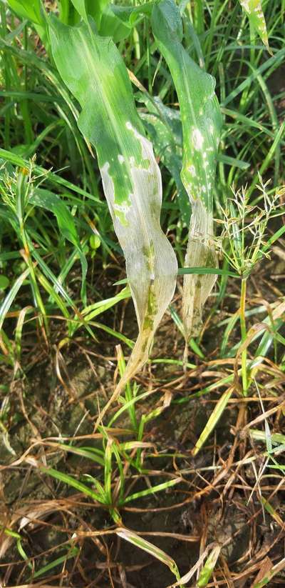 Varias platas del cultivo tienen eses aspecto y no están creciendo. Mi cultivo es maíz dulce