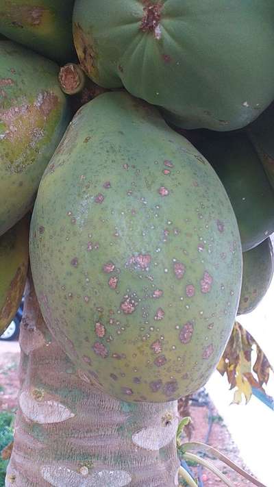 Hola muy buenas he encontrado estas manchas en mi papaya . Que podría ser?