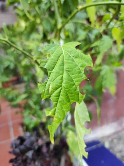 De un tiempo a esta parte encuentro las hojas de mi Chile campanilla así, como se aprecia en la imagen. Qué puede ser y como solucionarlo? Gracias.