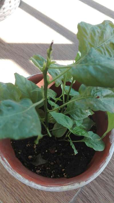 Plantita de chile picante con requemo en yema terminal