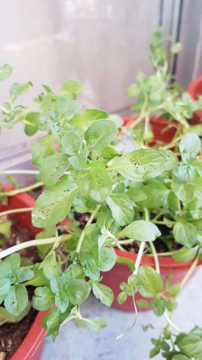 Pasé unos días fuera de casa y encargué mis plantas. Todas estaban bien menos la melisa. Estaba en el suelo, sentí que deshidratada. Le eché agüita durante lo q quedaba de día y hoy amaneció mejor pero tiene esos hoyos en sus hojas que no me parecen normales. No tiene pulgones ni ningún insecto.