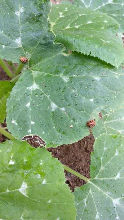 Hola a todos, soy nueva en esto, por lo que no conozco de plagas y enfermedades que pueda tener mi planta. Estas calabazas llevan más de un mes de haber sido cultivada y hace un par de días comenzaron a aparecerecerle estas pequeñas manchitas amarillas en la hoja y tengo una hoja que parece estar derrerida. Agradecería su ayuda.
