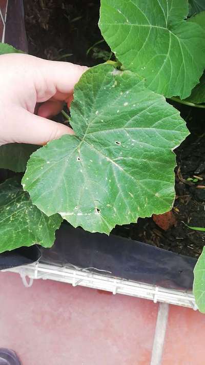 Hola a todos, soy nueva en esto, por lo que no conozco de plagas y enfermedades que pueda tener mi planta. Estas calabazas llevan más de un mes de haber sido cultivada y hace un par de días comenzaron a aparecerecerle estas pequeñas manchitas amarillas en la hoja y tengo una hoja que parece estar derrerida. Agradecería su ayuda.