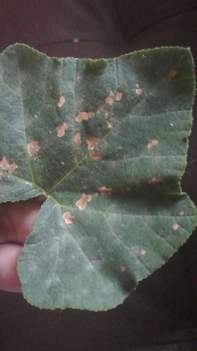 Hola Mariana, gracias por contactar a la comunidad Plantix. Por la foto que envió parece que podría ser hongo, Vea por favor nuestros enlaces en Plantix Mildiú lanoso , Antracnosis de las cucurbitáceas , Tizón foliar de las cucurbitáceas con la información completa y el tratamiento recomendado. Si tiene más fotos por favor envíelas así podremos puntualizar mejor el patógeno. Saludos,