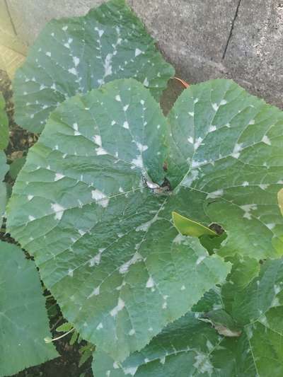 Hola a todos, soy nueva en esto, por lo que no conozco de plagas y enfermedades que pueda tener mi planta. Estas calabazas llevan más de un mes de haber sido cultivada y hace un par de días comenzaron a aparecerecerle estas pequeñas manchitas amarillas en la hoja y tengo una hoja que parece estar derrerida. Agradecería su ayuda.