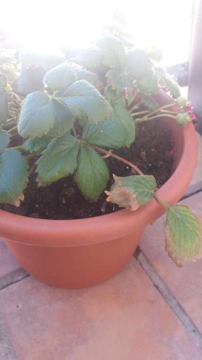 Hace unos días me dieron la información de que le faltaba nitrógeno a mis plantas de frutilla/fresa. Les puse un fertilizante con nitrógeno pero se siguen poniendo así las hojas... Alguien sabe qué más puedo hacer? Gracias 🙌