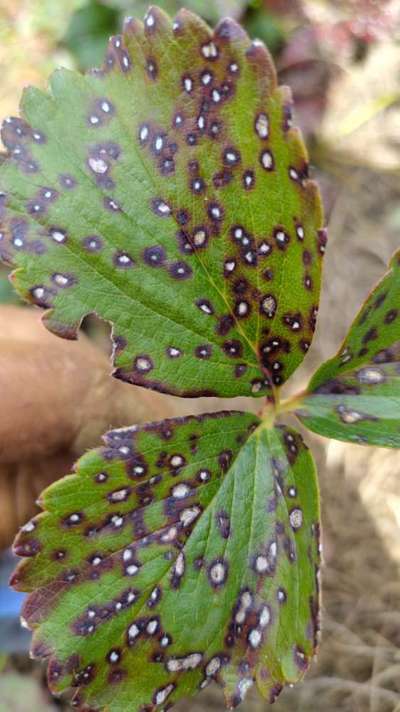 Moteado blanco en hojas de planta de fresa