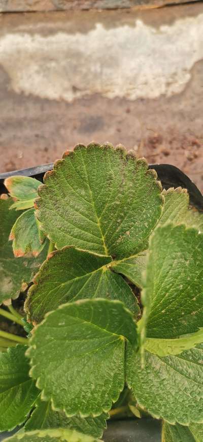 Hace unos días me dieron la información de que le faltaba nitrógeno a mis plantas de frutilla/fresa. Les puse un fertilizante con nitrógeno pero se siguen poniendo así las hojas... Alguien sabe qué más puedo hacer? Gracias 🙌