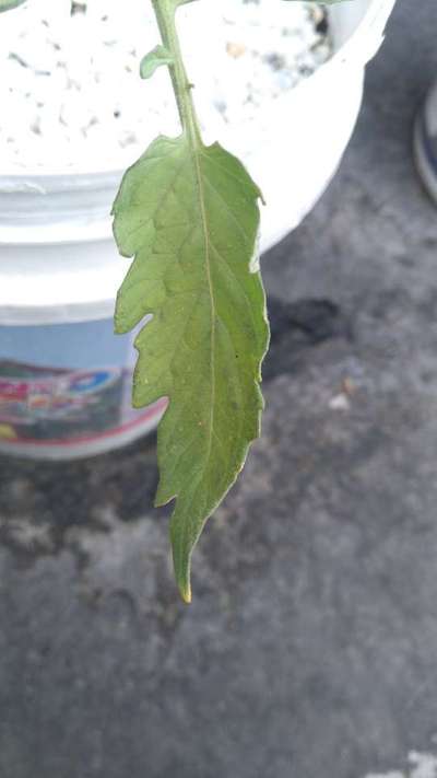 Hojas del tomate se vuelven amarillas con una pequeñas manchas grises casi cafe