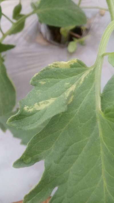 Hola, presento esta coloracion en hojas solo en el haz de la hoja, me podrian ayudar a decirme que sera...??