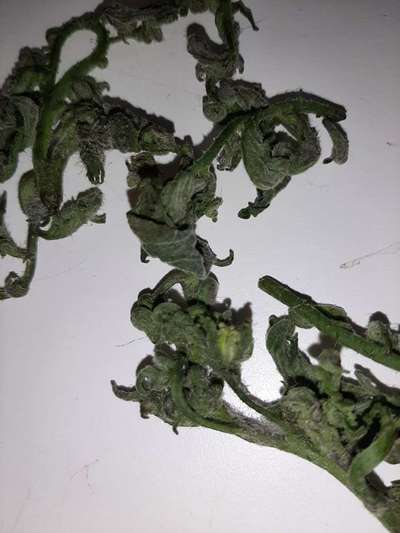 Hojas muy retorcidas. No se observa plaga. El color parece vivo.