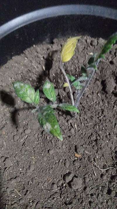 Hola a todos, espero que estén muy bien, desde hace unos días mi tomate a presentado parches blancos, las hojas se están poniendo amarillas e incluso algunas adquirieron manchas cafés como si se hubiera secado. Yo lo riego cada 2 días, y solo lo riego en las raíces. He leído y pensé que era un hongo así que le he echado ajo, bicarbonato, canela y nada de eso ha funcionado.