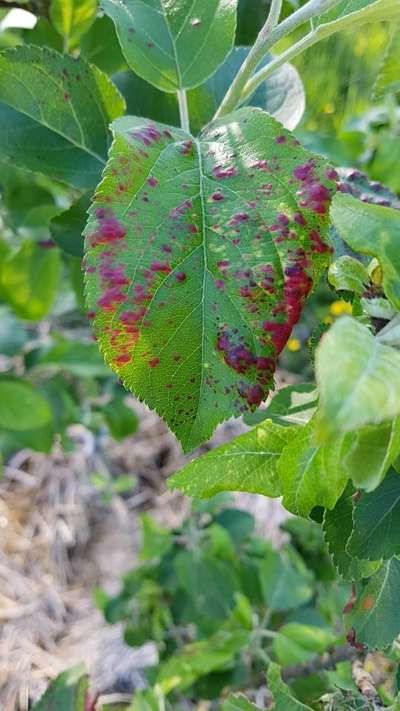 Hello dear Celyne how are you dear the symptom show two main issue here dear Apple Scab, Black Rot that we called frog eye leaf spots dear just spray hexaconozol+metiram dear