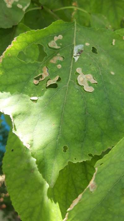 En savoir plus sur PlantixFeuilles abimees avec des traces pales