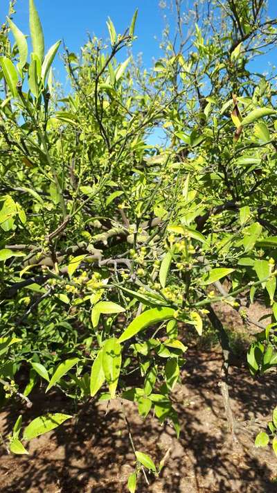 C est un citronnier vert avec des citrons qui tombe avec une cicatrice Ronde aux dessous de couleur grise brune