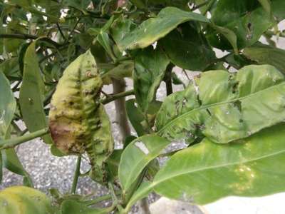 En savoir plus sur PlantixFeuilles fleur d'oranger qui se gourbent Et teintees de jaune.