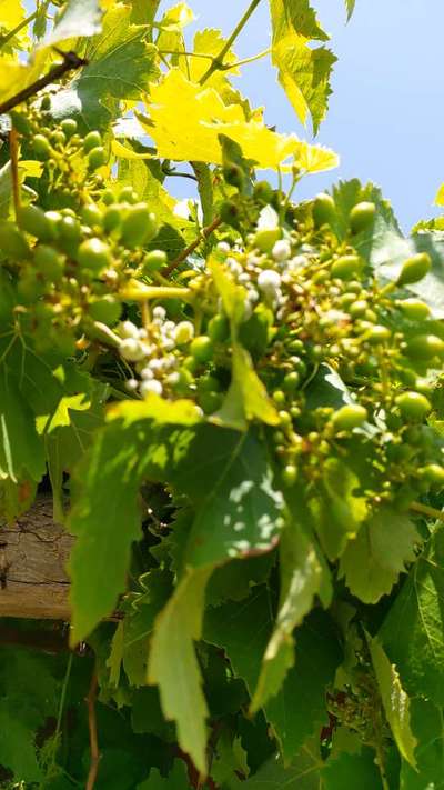 En savoir plus sur PlantixLes gtain de la vigne en debut de croissance .mais certaines graines sont entouree de matiere blanchatre. . Quel est le remede. Merci