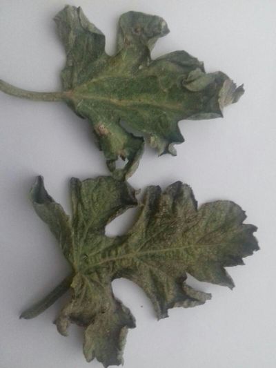 bonsoir, il vaut mieux de prendre des photos sur le champ sa sera plus approximatif le diagnostic. je vois que les feuilles sont attaquées par le Mildiou maladie fongique merci