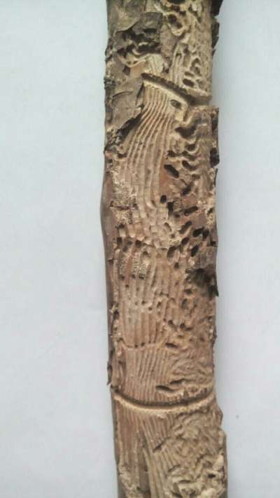 Neiroun, insecte xylophage .attaque le bois de l olivier en creusant des galeries dans les branches.