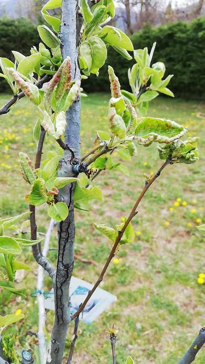 Hello dear Christophe Darlay how are you dear the symptom is seem to be Peach Leaf Curl and Redcurrant Blister Aphid dear apply spirotetramint or acephate+amino acid dear that kill insects and open these leaves dear