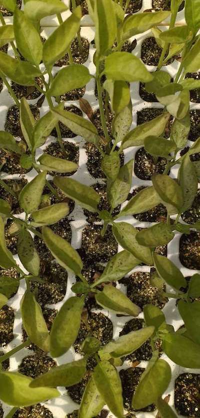 Imene عليكي بزراعة النبتات هي في مرحلة تفتقد الاسمدة و يجي نقلها بالحقل ، كما أن الحرارة بالمكان مرتفع، قومي بتهوئة المكان و مراقبة الحرارة و الرطوبة