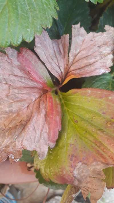 En savoir plus sur PlantixFeuiĺles de fraisier qui seches de couleur rouge cuivre puis meurent