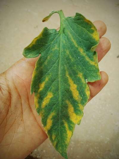 Bjr mes tomates présentent des tâches blanches avec déchirures sur le devant de la feuille Sur l'arrière des insectes noires font leur apparition