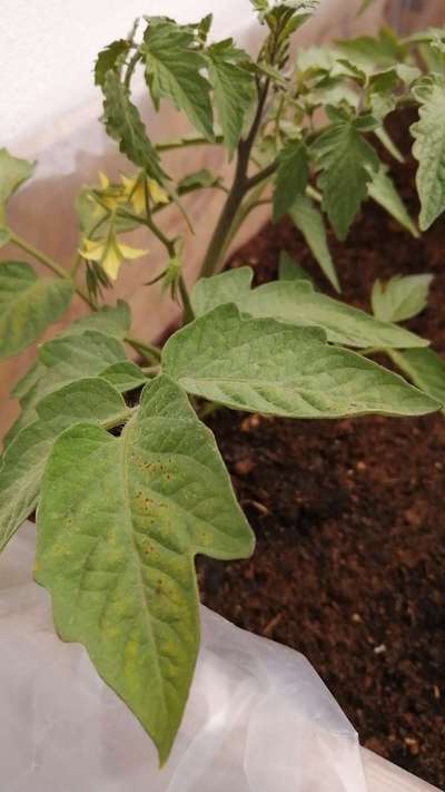 En savoir plus sur PlantixTâches brunes éparpillées sur la face des feuilles qui fini par sécher au centre, quelques traces au revers.