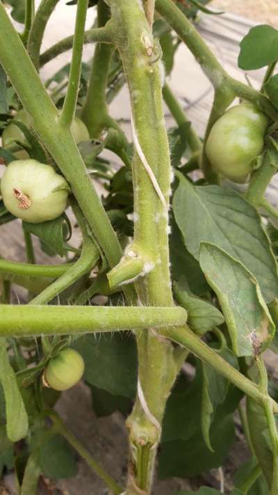 Le plan de la tomate présente les feuilles comme si les feuilles étaient en contact avec l'eau chaude