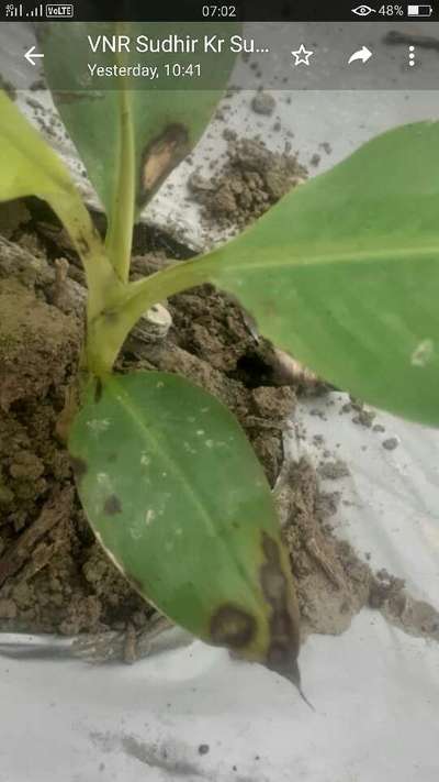 Tissue kele ka plants me black spot or deep se jhulas gaya hai plants..