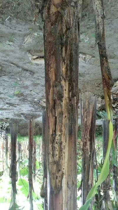 यह केले के पेड़ में कीड़े लगने से पेड़ खोखला होकर टूट जाता है