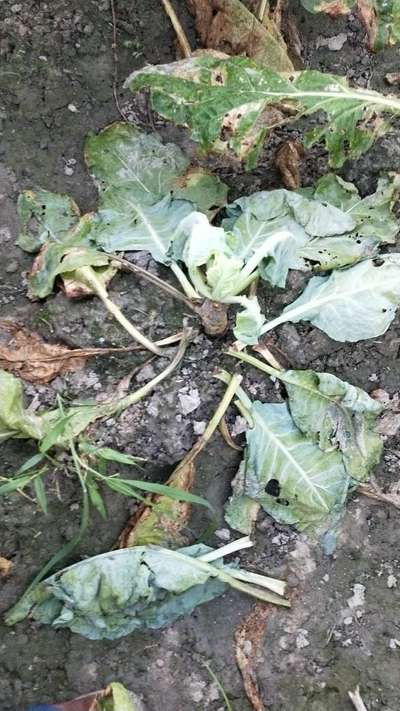 पत्तियां सूखने के बाद धीरे - धीरे नीचे से गलने लगती है।
