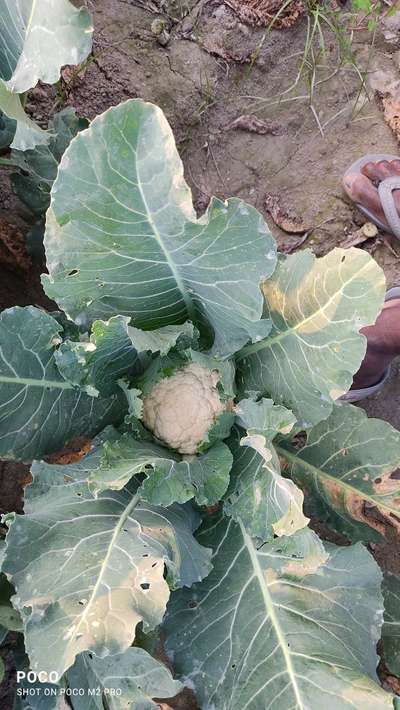 फूलगोभी में बनने वाले गोभी पर काले रंग के धब्बे बन रहे हैं और गोभी का आकार छोटा हो रहा है. जैसा कि चित्र में देखा जा सकता है.
