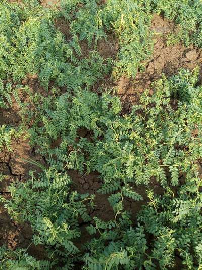 पत्तिया मुड़ रही है चने पिले पड़ रहे है