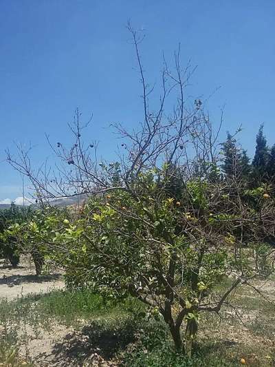 Hamara nibu ka tree hai jisme patiyo aur tahniyao pe safed SA kids lag Chuka hai jis se tahaniya sukh rahi hai