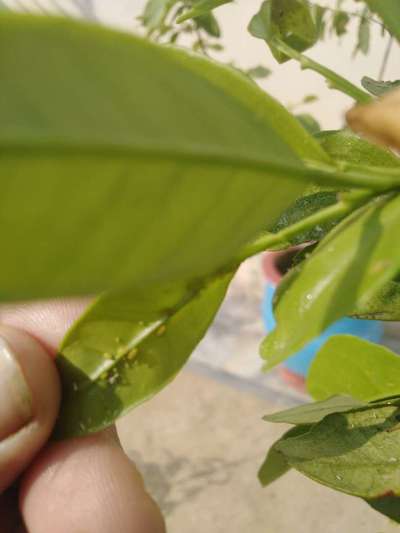 Ye fruter ka poda hy is k patty k neechy ye choty choty green color k keery hen aur kuch patton k ooperye doosri tsveer me kaly dots hen patty khrab ho rhy hen kon sa spry kron.