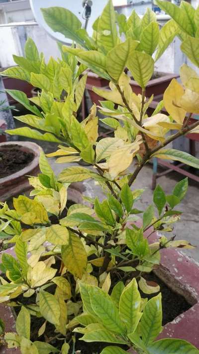 गंध राज फ़ूल की पत्तियां पीली पड़ रही हैं एवं पत्तियों के सिरे में काले रंग के धब्बे आ रहे हैं उपचार बताएं।