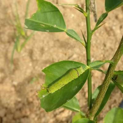 ये कीड़ा निम्बू की पत्तियों को साफ कर रहा, ये स्टैड एक लार्वा है। कृपया पूरी जानकारी दे