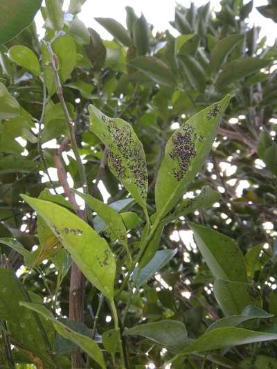 पत्तीयो पर झुलसने जैसा, फल पर दानेदार, खुरदरी परत जो रगड़ने पर छुट जाती है।