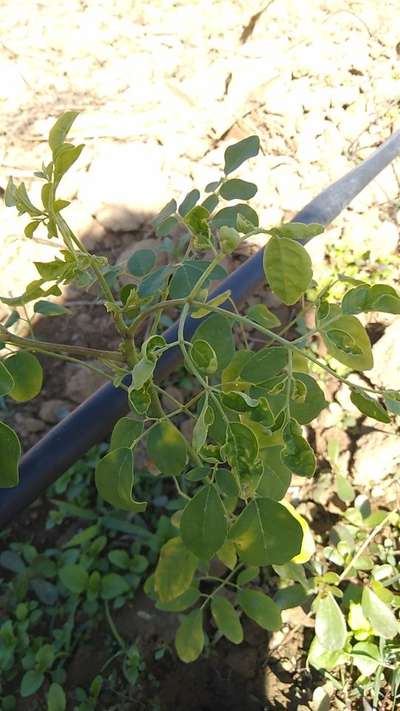 यह सहजन का पौधा है इनकी पत्तियां सिकुड़ रही है तथा पत्तियां पीली हो रही पौधों में ताजगी नहीं है।